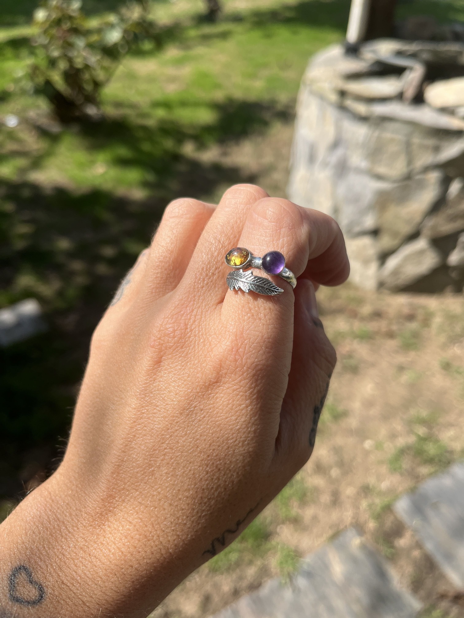 Inicio / Catálogo / Catálogo / Anillo de Ámbar y Amatista pluma
