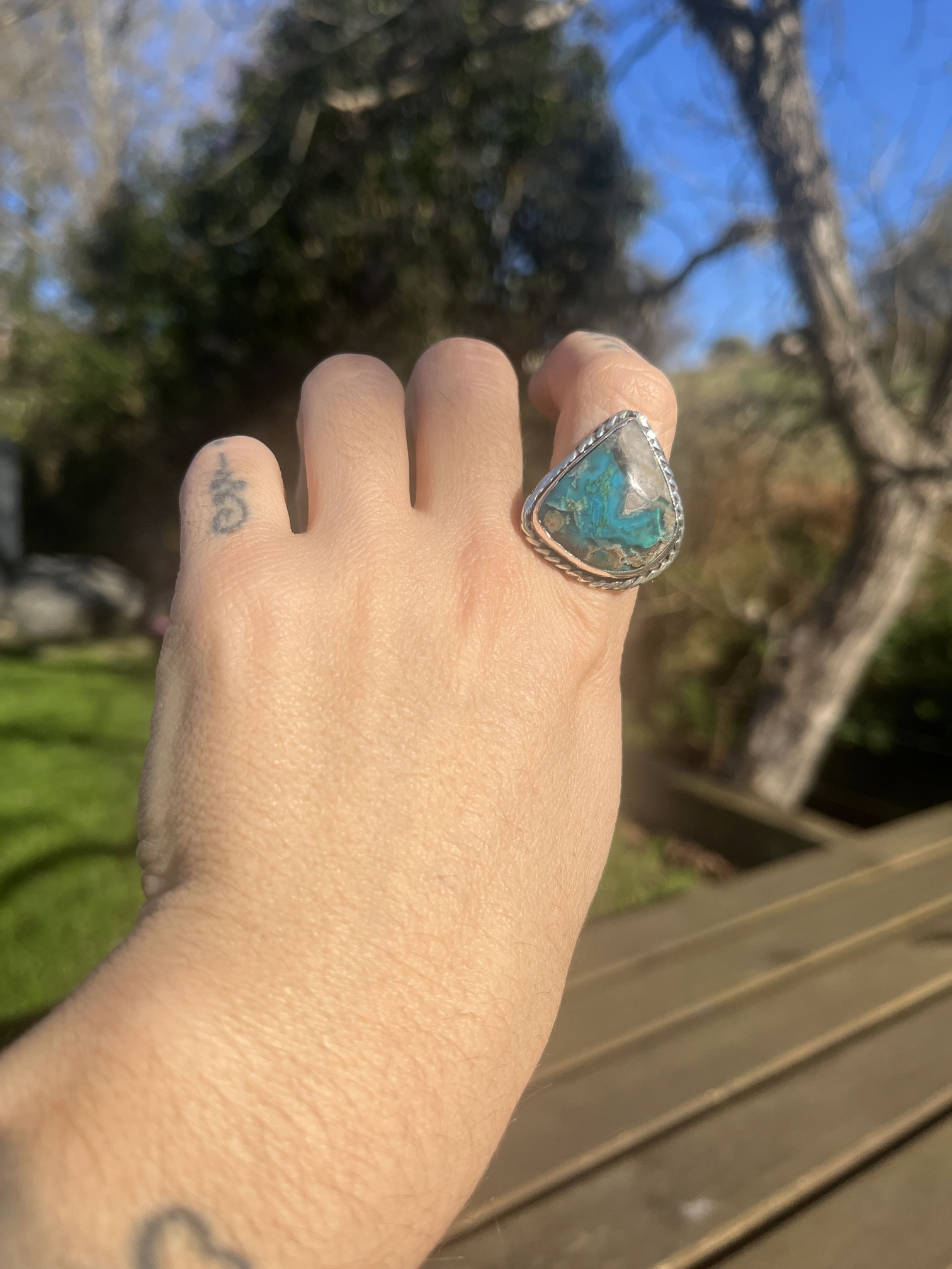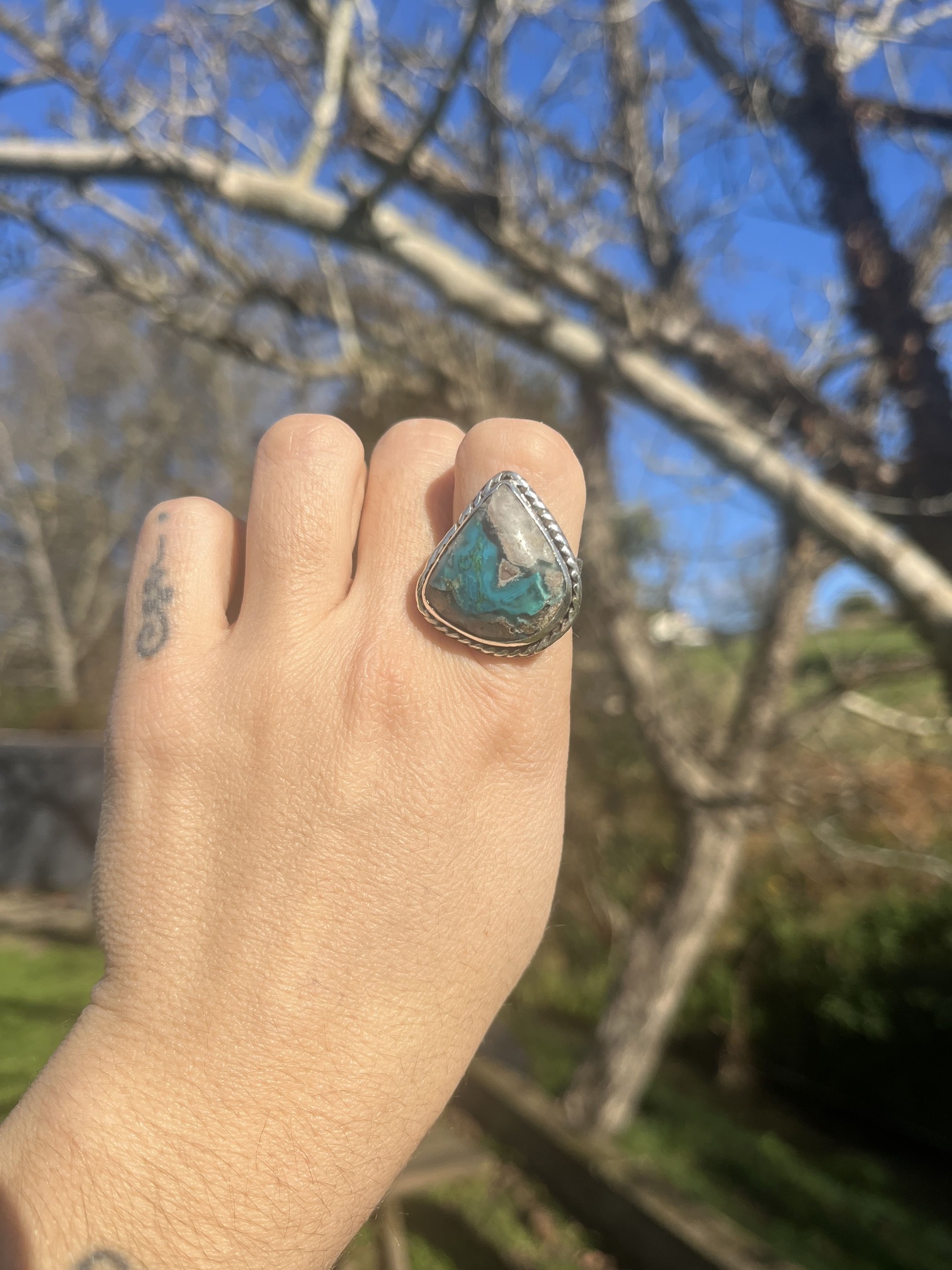 Anillo de Cuarzo con drusa y Crisocola - Imagen 3