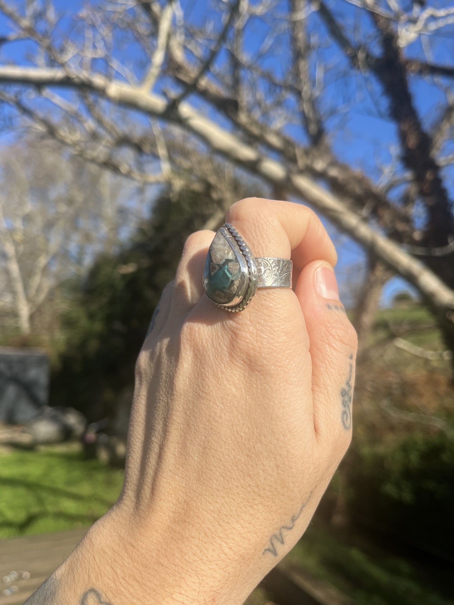 Inicio / Catálogo / Catálogo / Anillo de Cuarzo con drusa y Crisocola