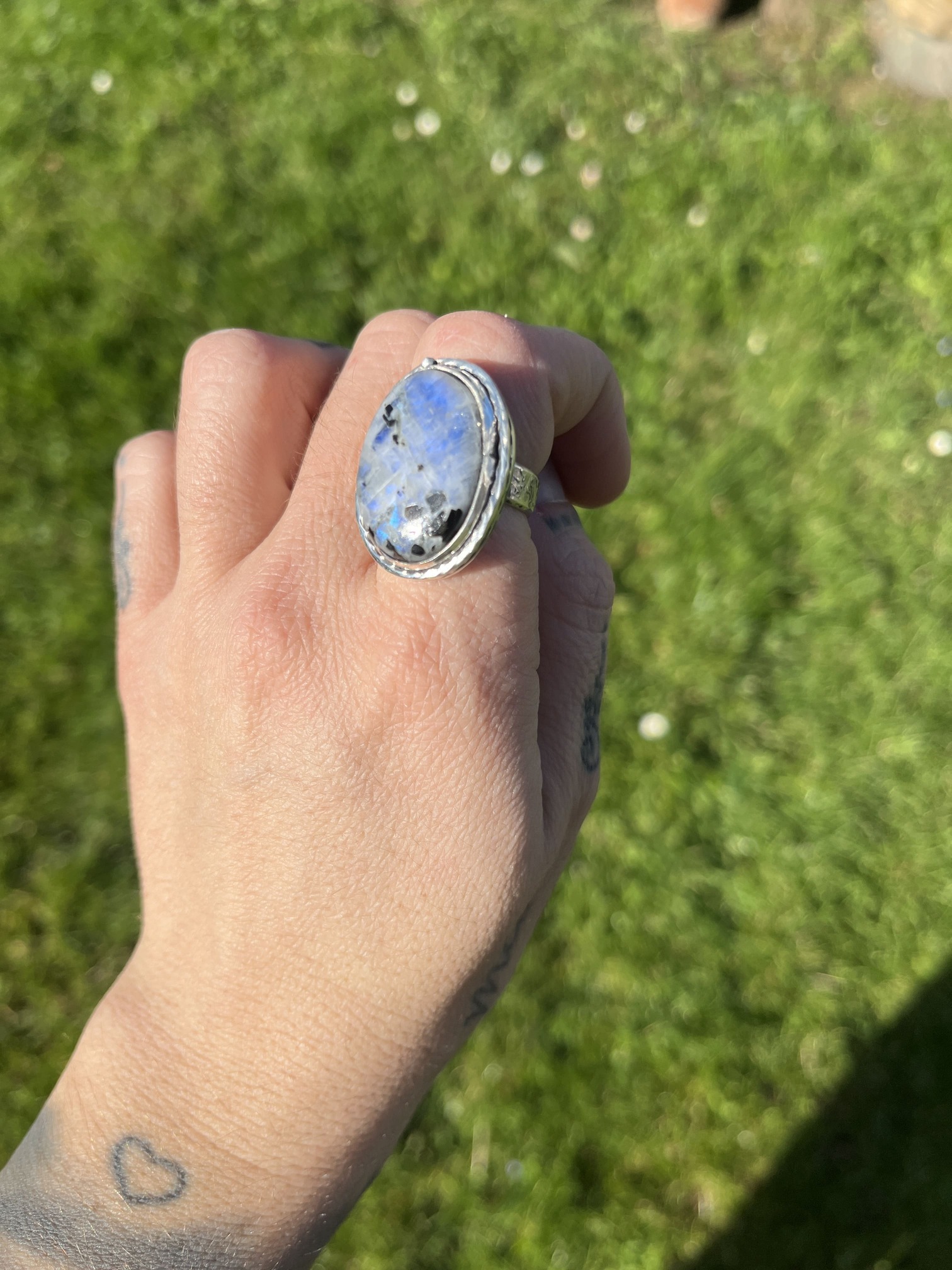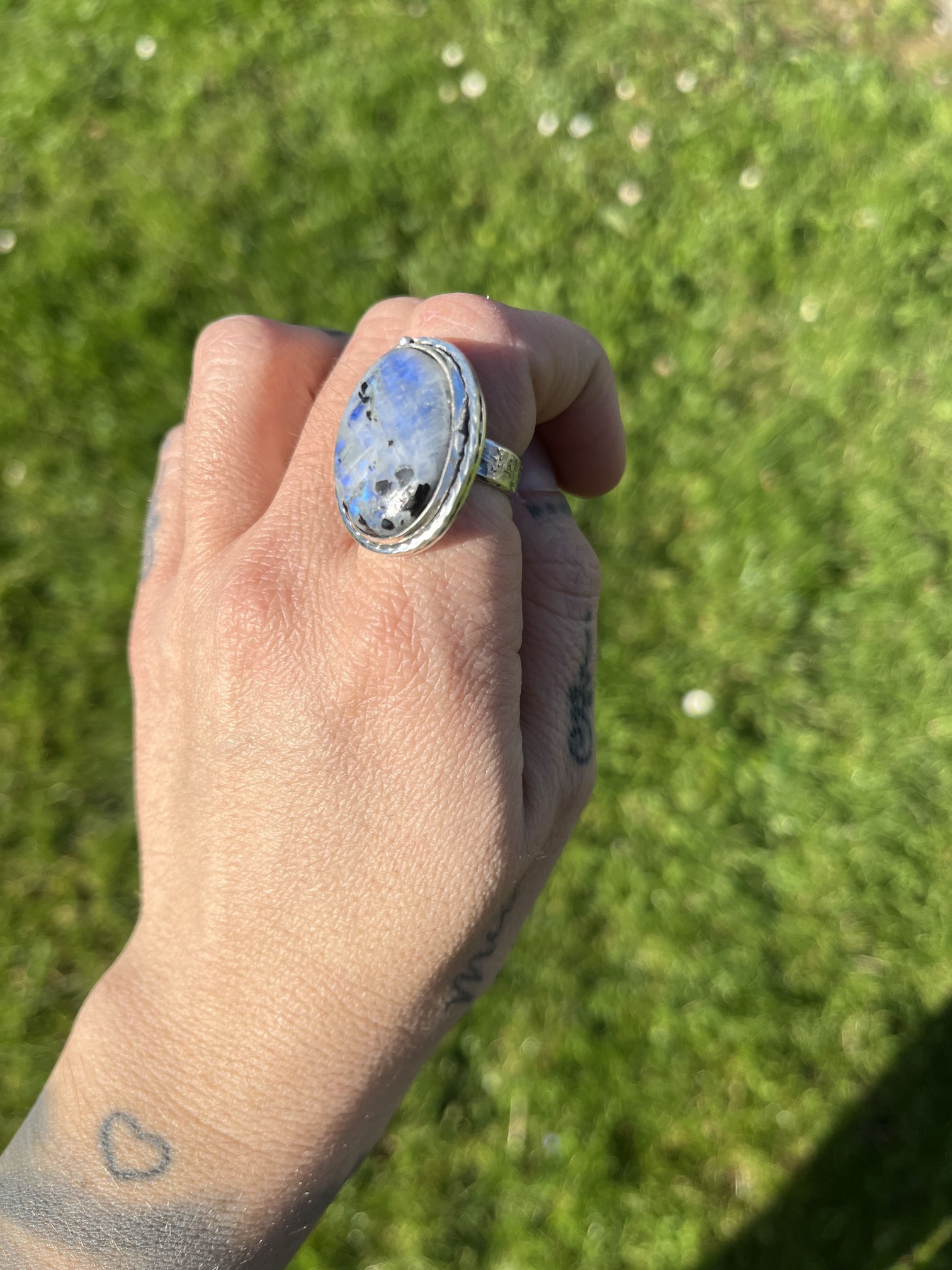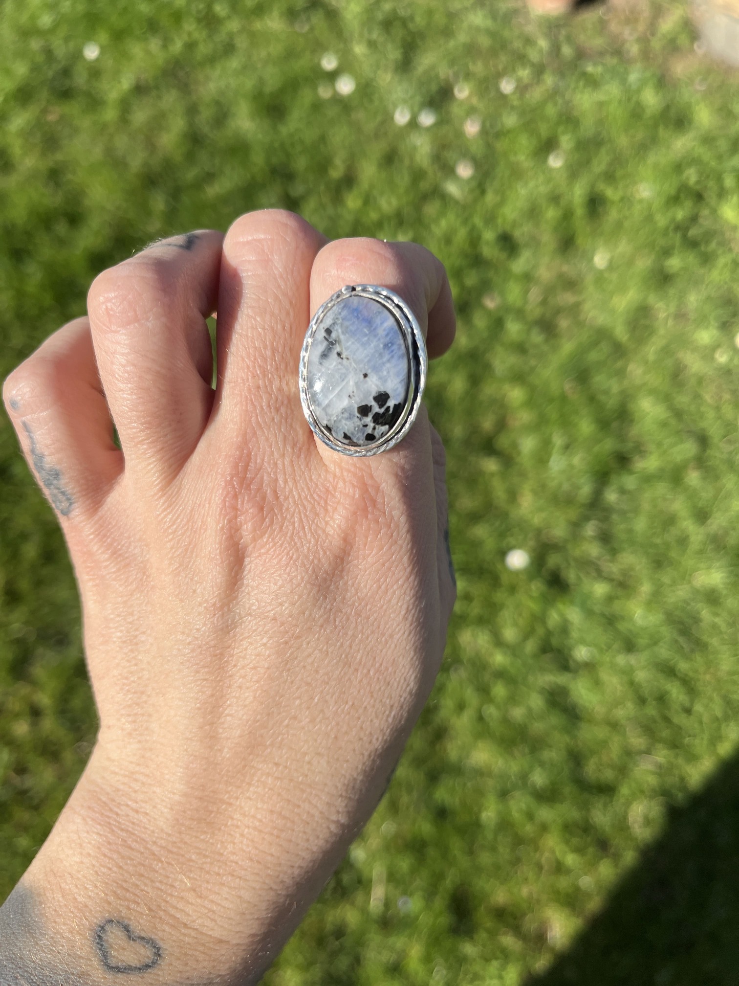 Anillo de Piedra de luna y Turmalina negra con cordoncito - Imagen 3