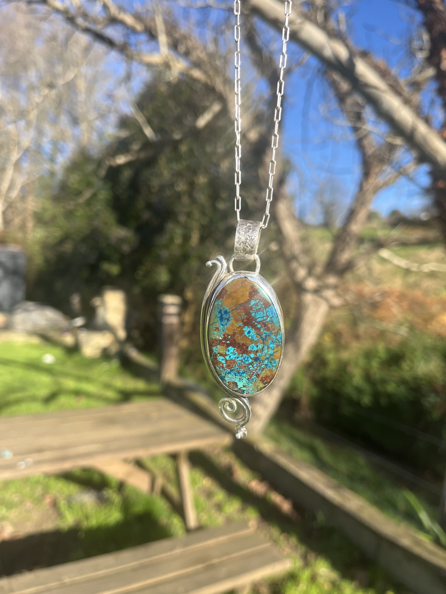 Inicio / Catálogo / Catálogo / Colgante de Crisocola con adorno