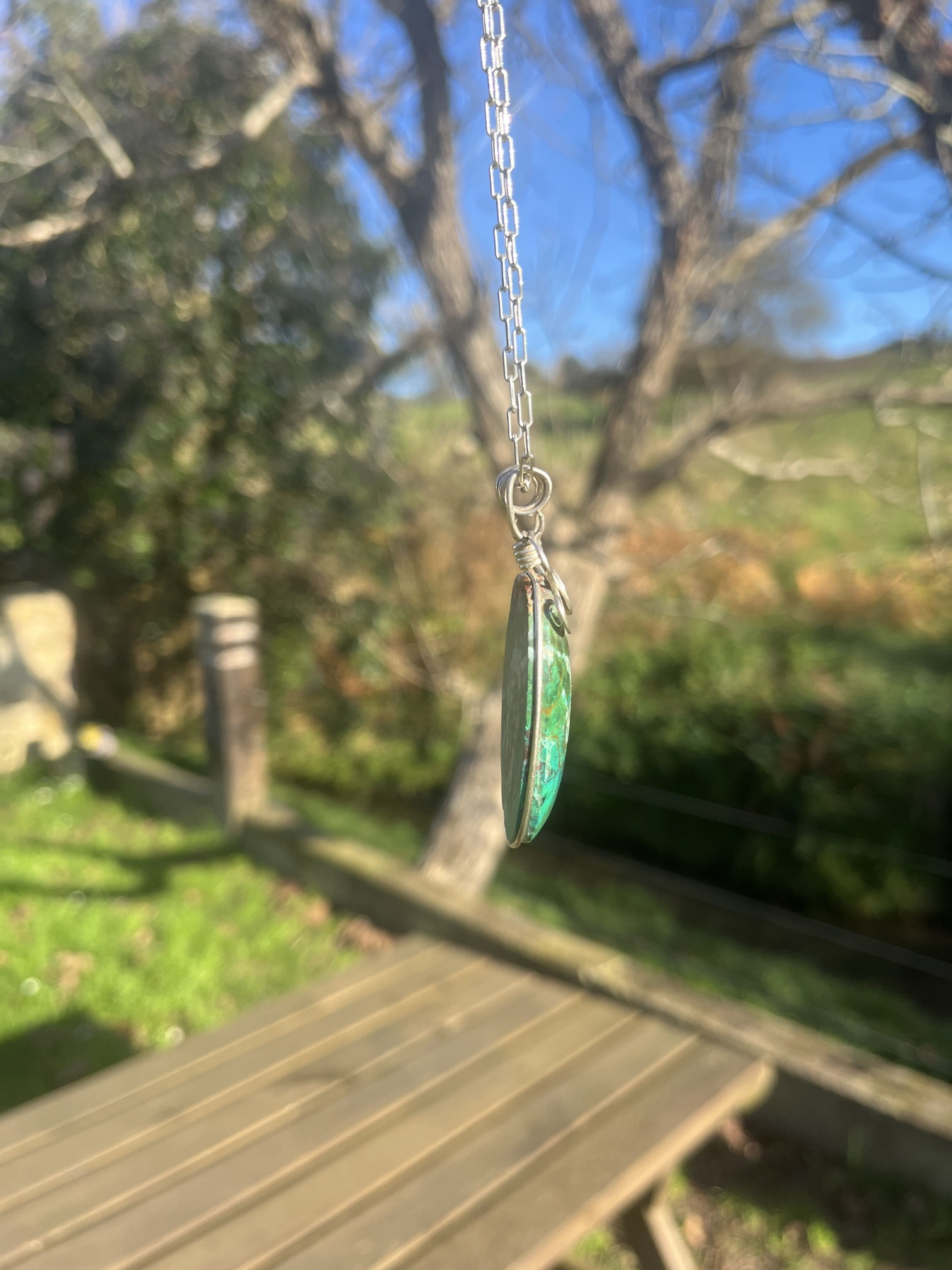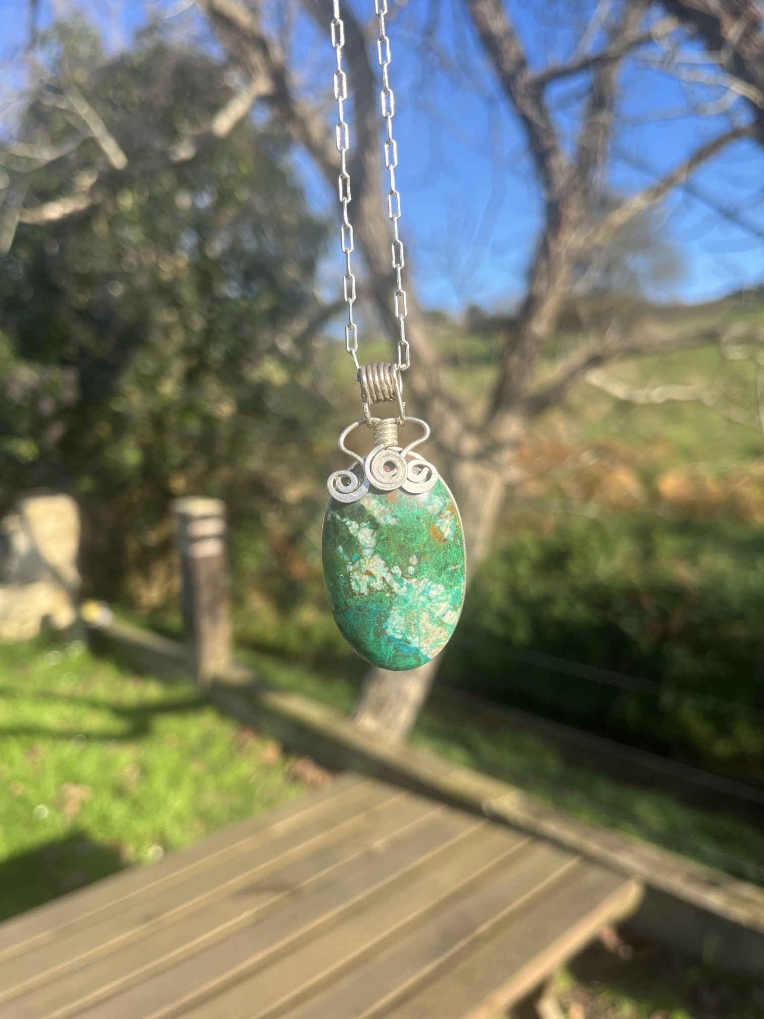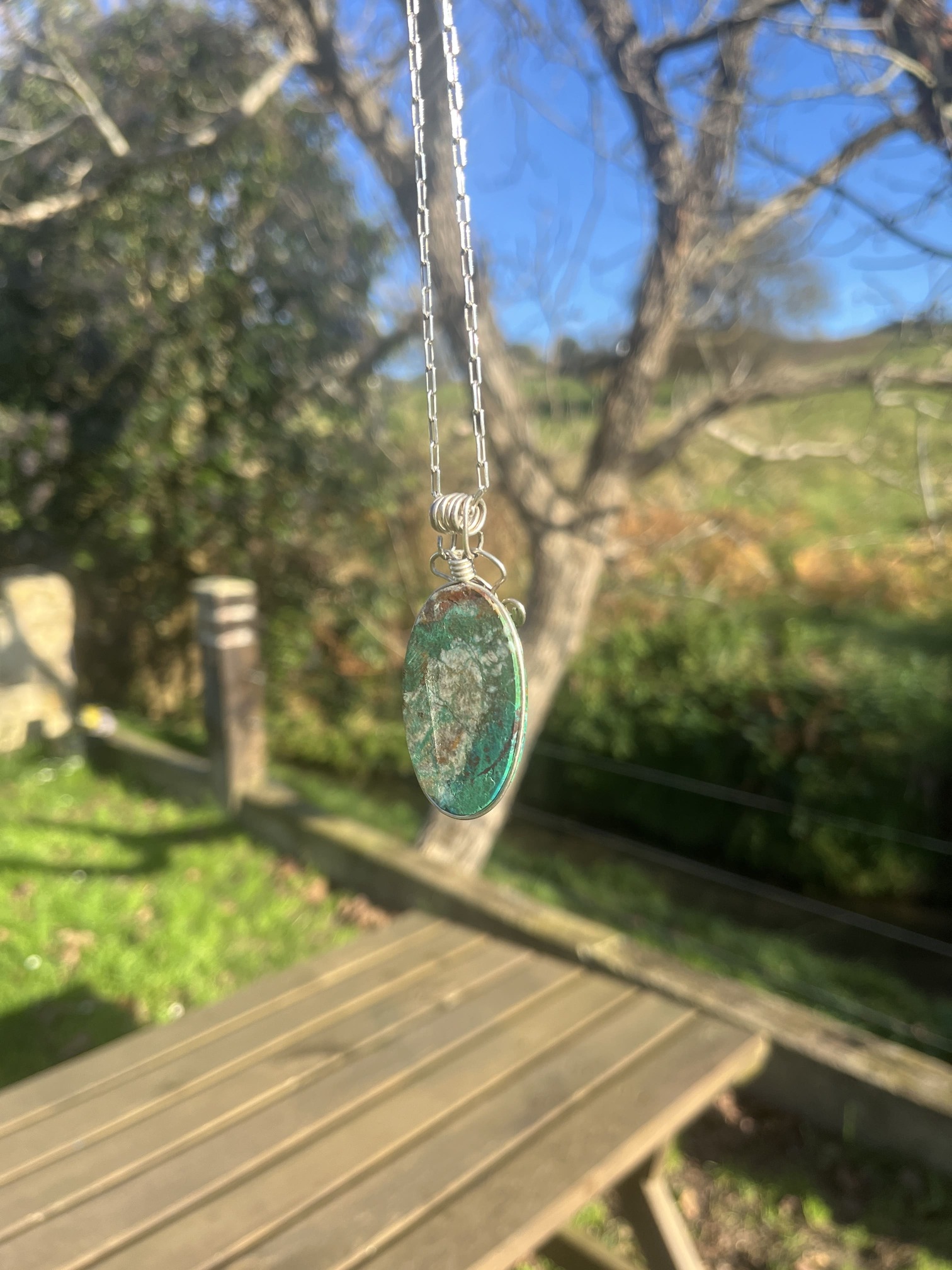 Colgante de Crisocola con hilo de plata