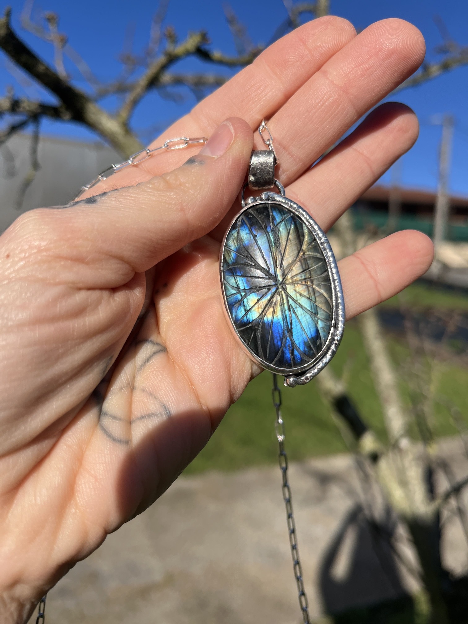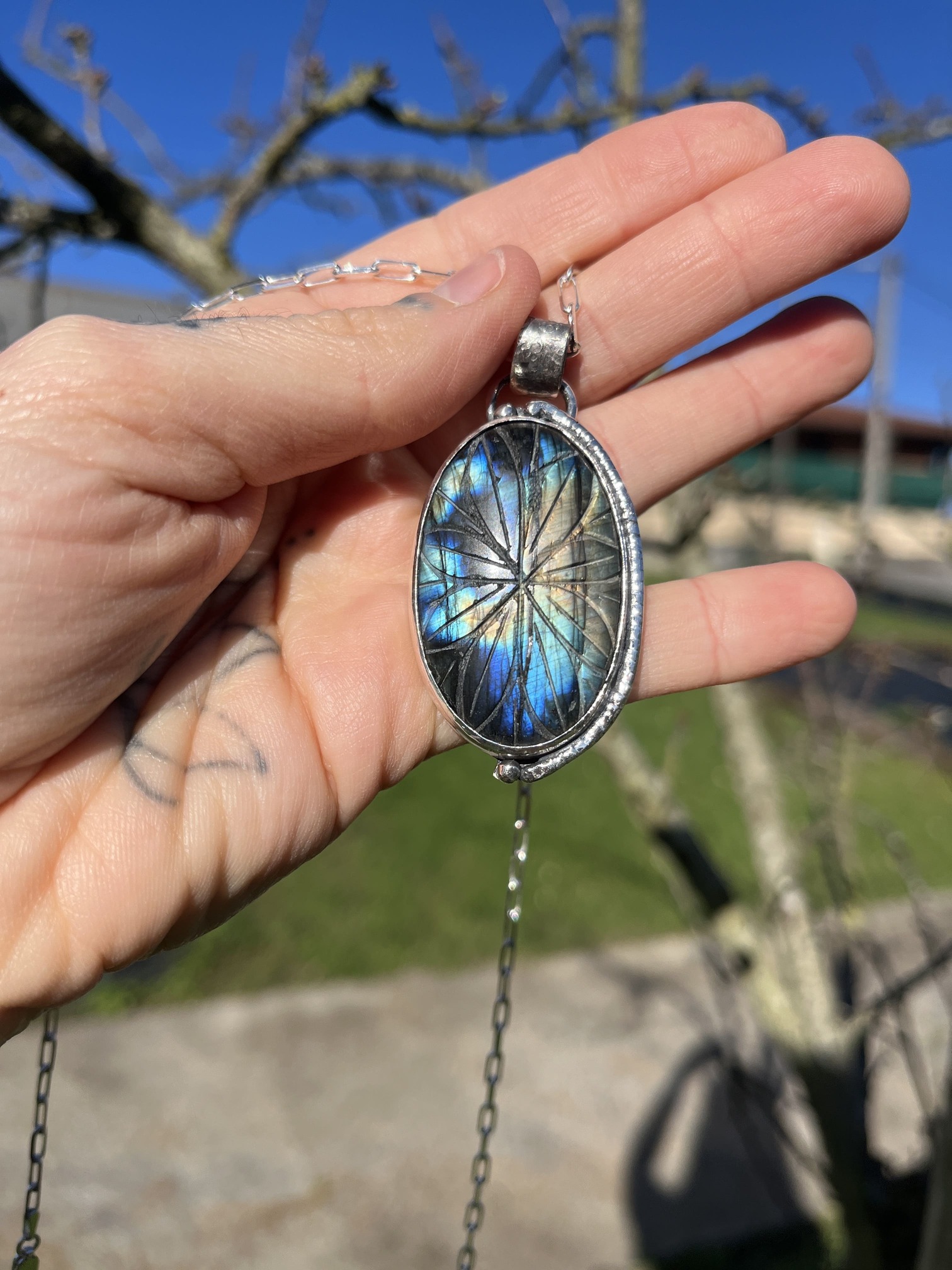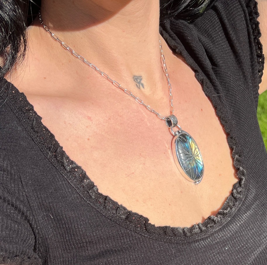 Colgante de Labradorita tallado con mandala