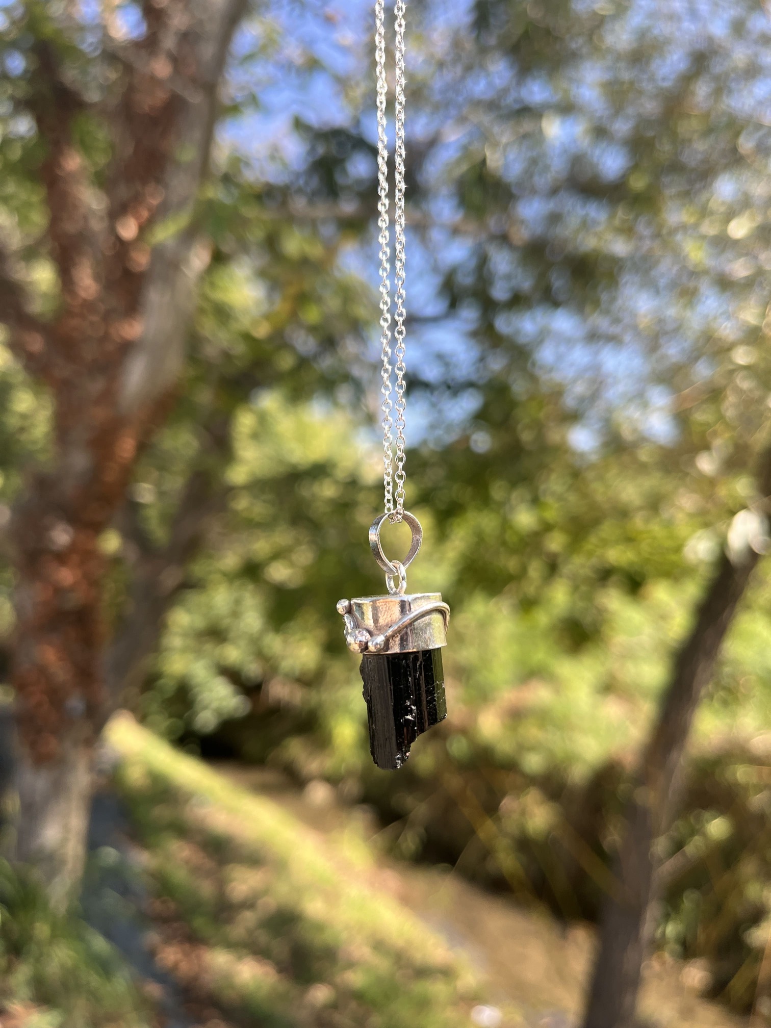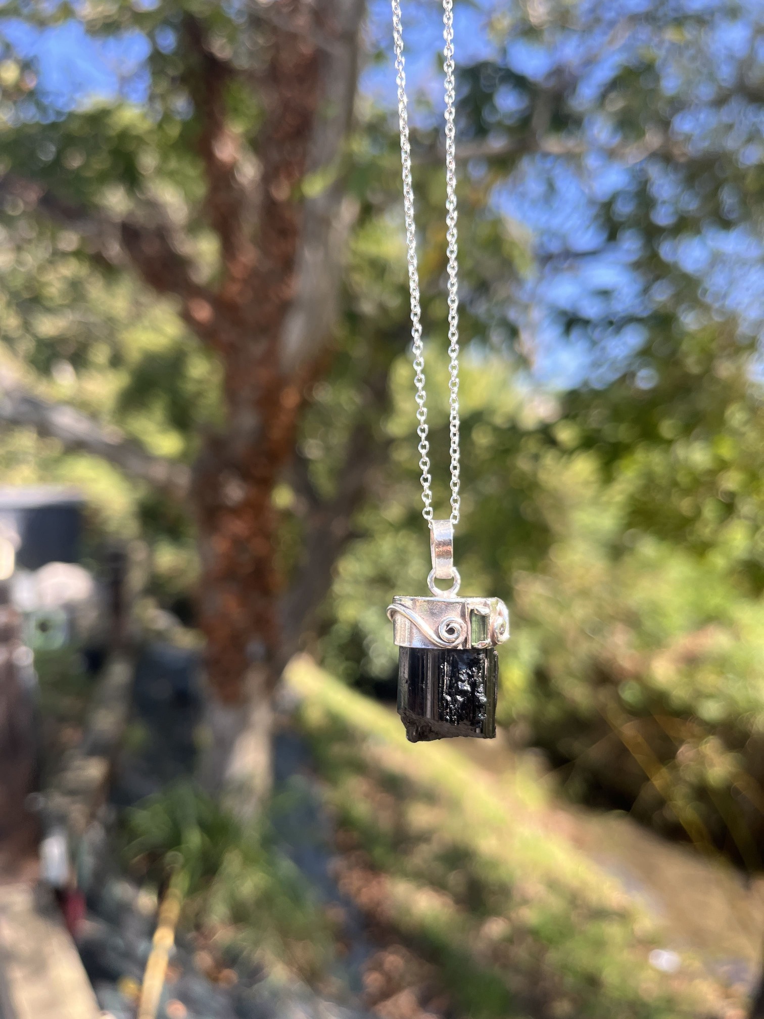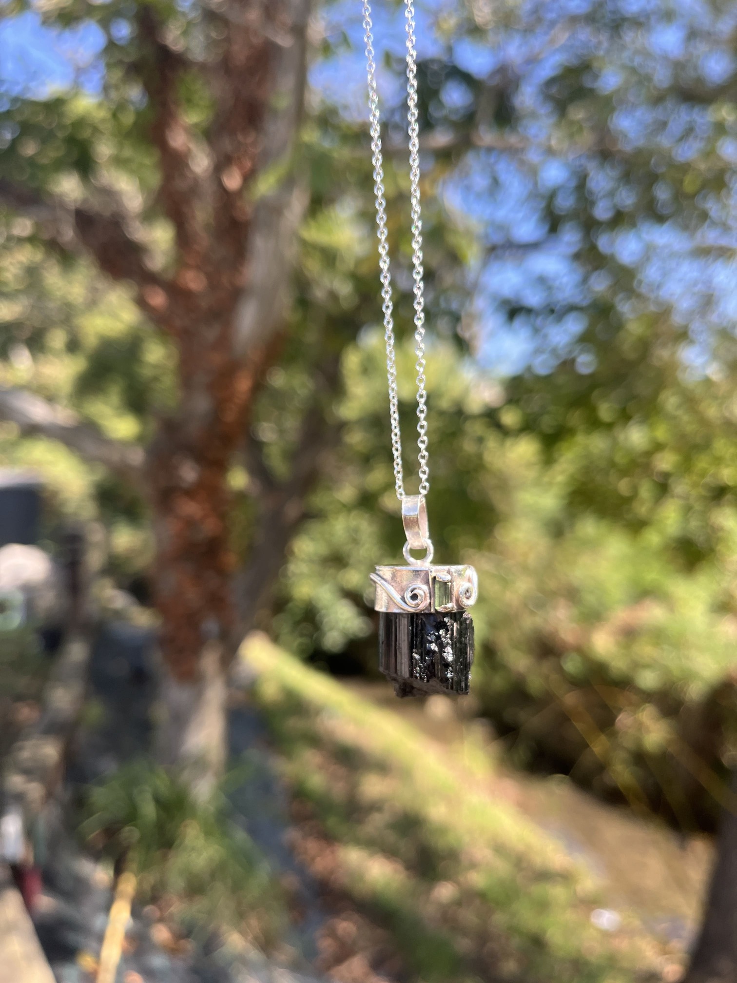 Colgante de Punta de Turmalina negra en bruto y turmalina verde
