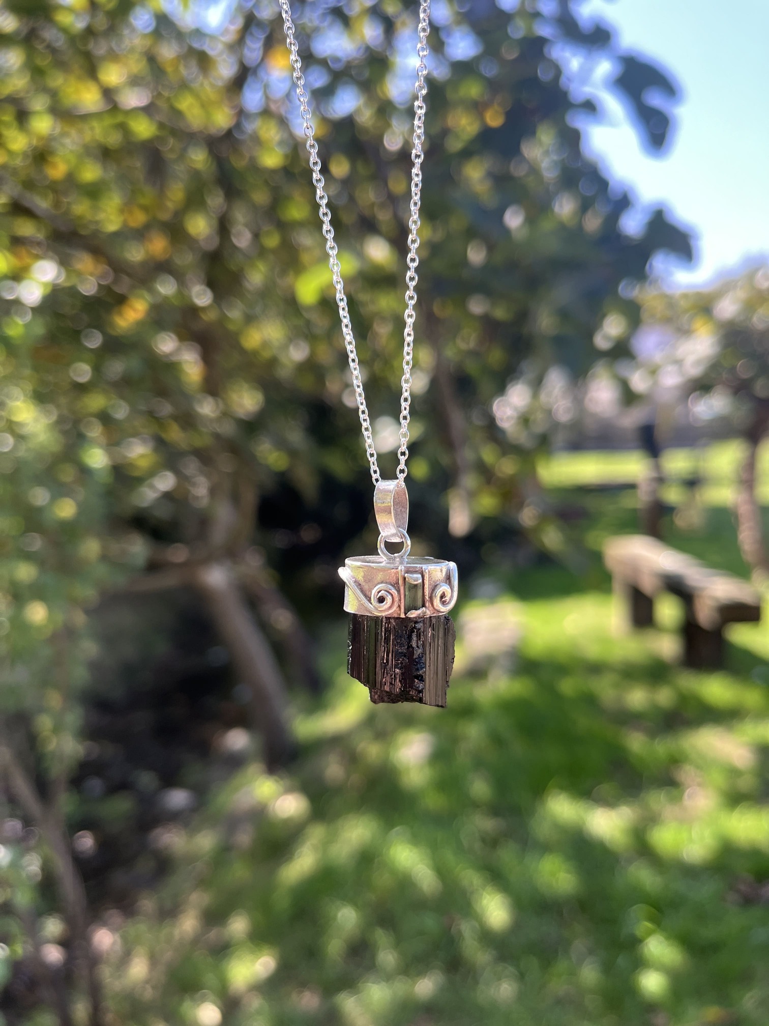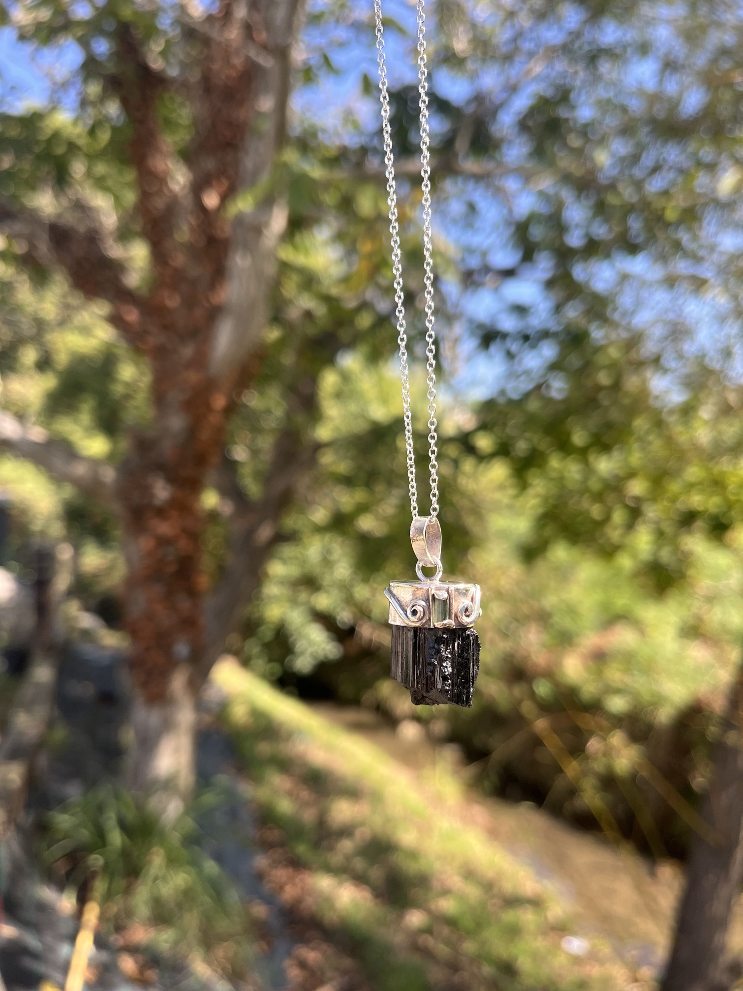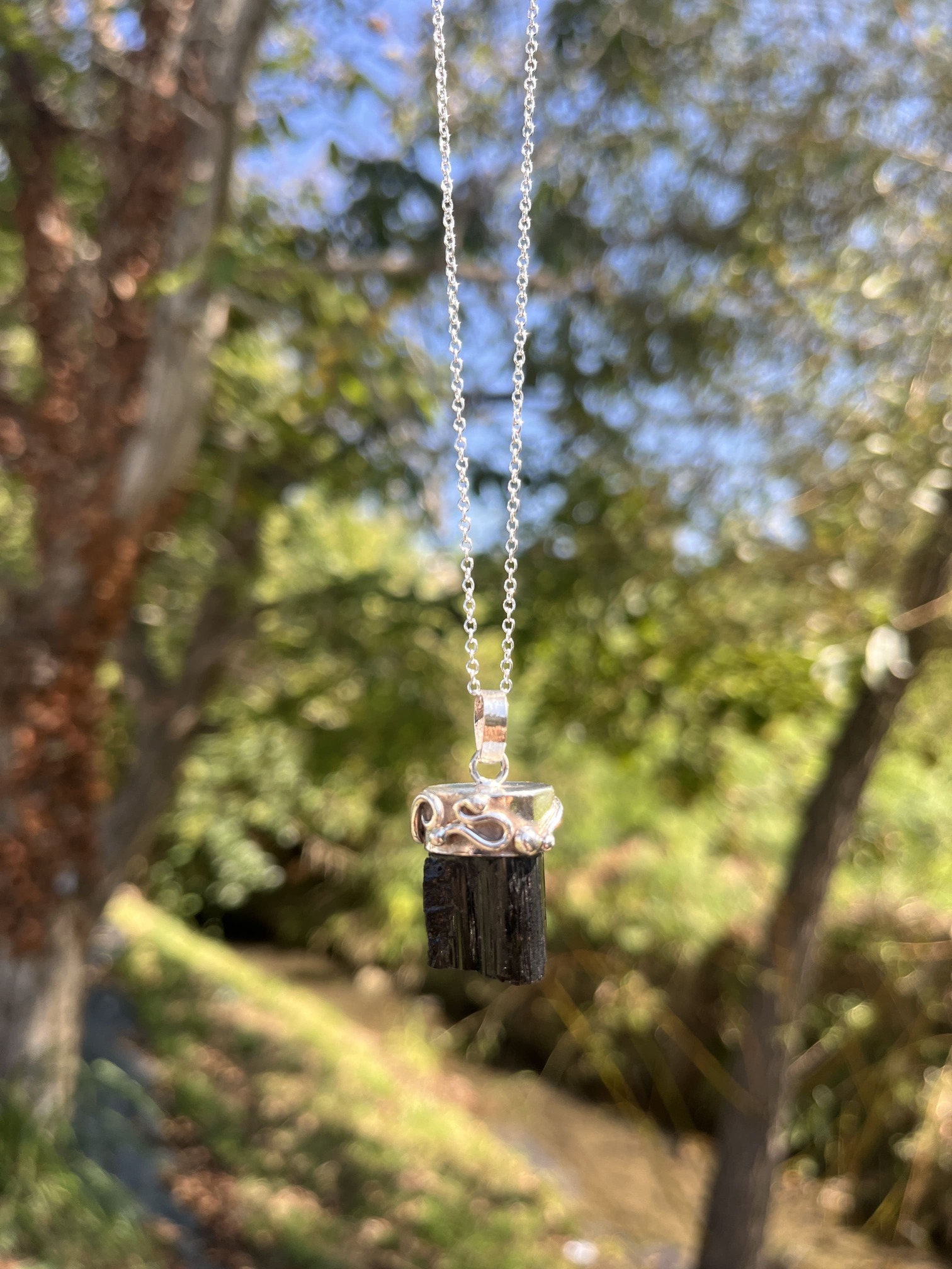 Colgante de Punta de Turmalina negra en bruto y turmalina verde